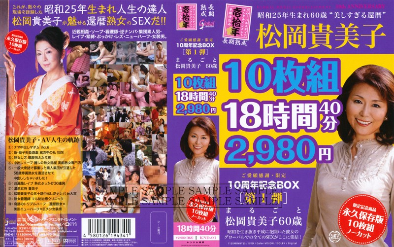 | タイトル | ご愛顧感謝・限定10周年記念BOX[第1弾] まるごと松岡貴美子 60歳 10枚組18時間40分 2,980円 AV |