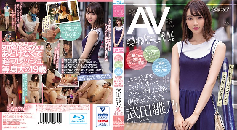 タイトル 162cm8頭身モデル体型!スナップ感がエモいハンドテク!漫画みたいな大きな瞳!エステ店でこっそり抜いてアゲル押しに弱い現役女子大生‘武田雛乃’AV debut!! (ブルーレイディスク)AV