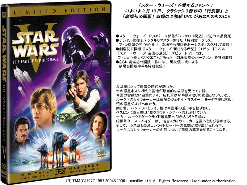 | タイトル | スター・ウォーズ エピソード5 帝国の逆襲 2枚組リミテッド・エディション (期間限定) gra |