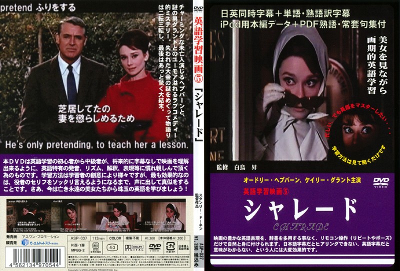 | タイトル | 英語学習映画 シャレード 日英同時字幕+単語・熟語訳字幕 iPod用データ、熟語PDF電子テキスト付 | |